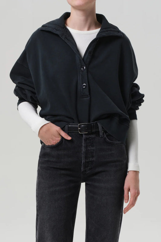 Mirelle Charcoal Funnel Neck Button Sweatshirt