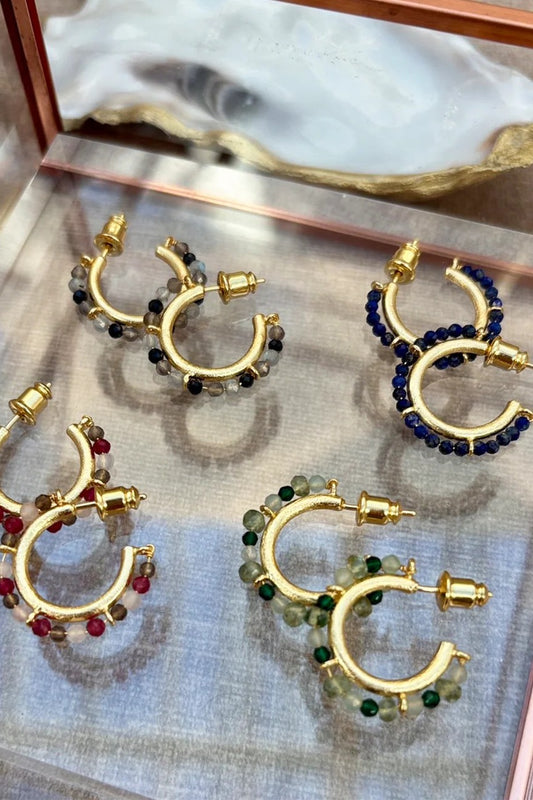 Ophelia Small Gemstone Hoops Smoky Quartz, Labradorite & Black Onyx