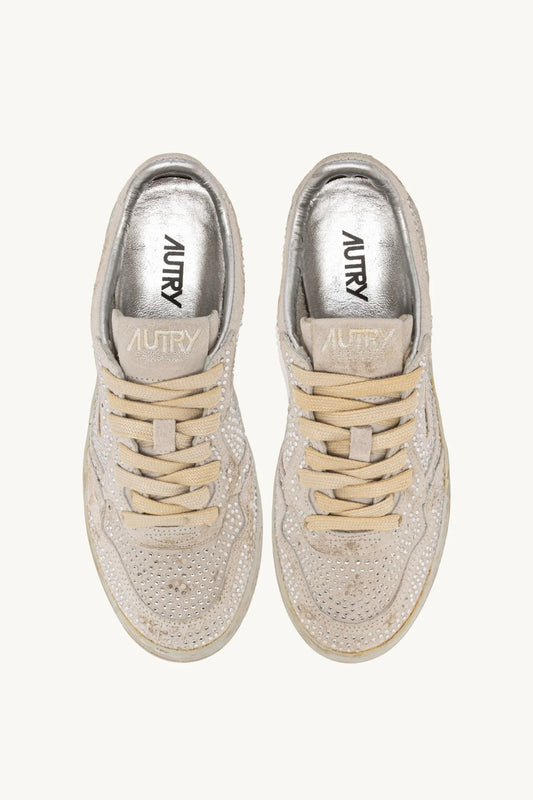 Medalist White Low Crystal Micro Rhinestones Sneakers