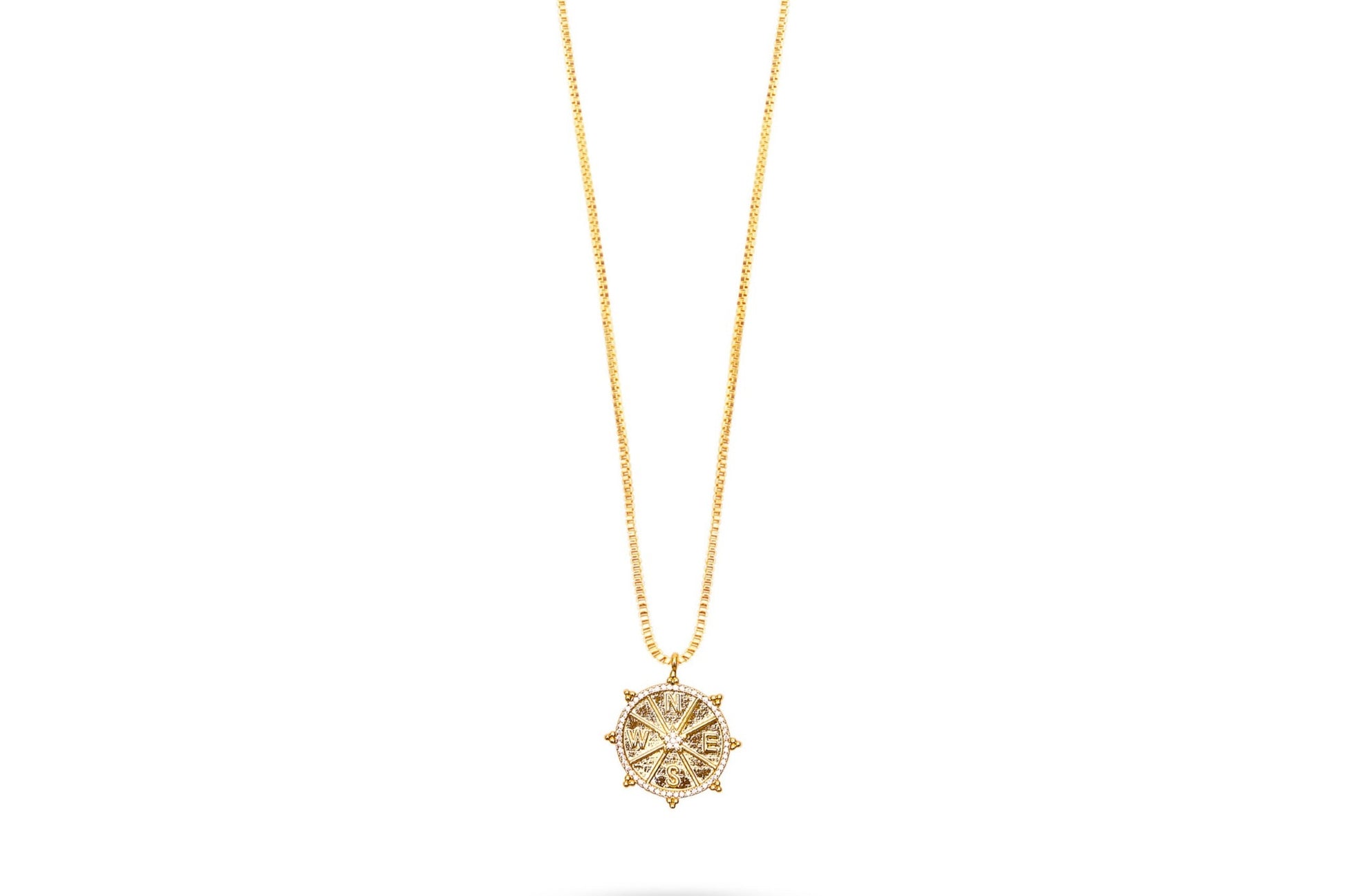 A firm favourite with us, this Compass necklace by Talis Chains is the perfect layering piece. We style with the brown Tokyo choker necklace.