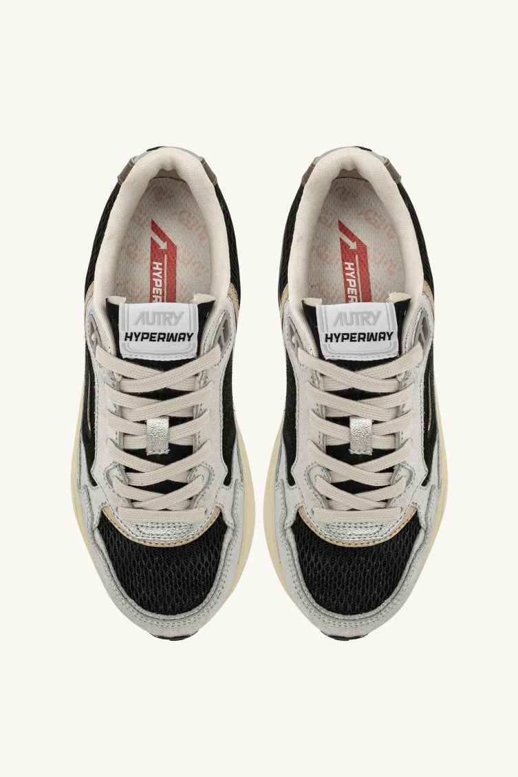 Hyperway Sneakers in Black and Silver Laminated Leather and Mesh