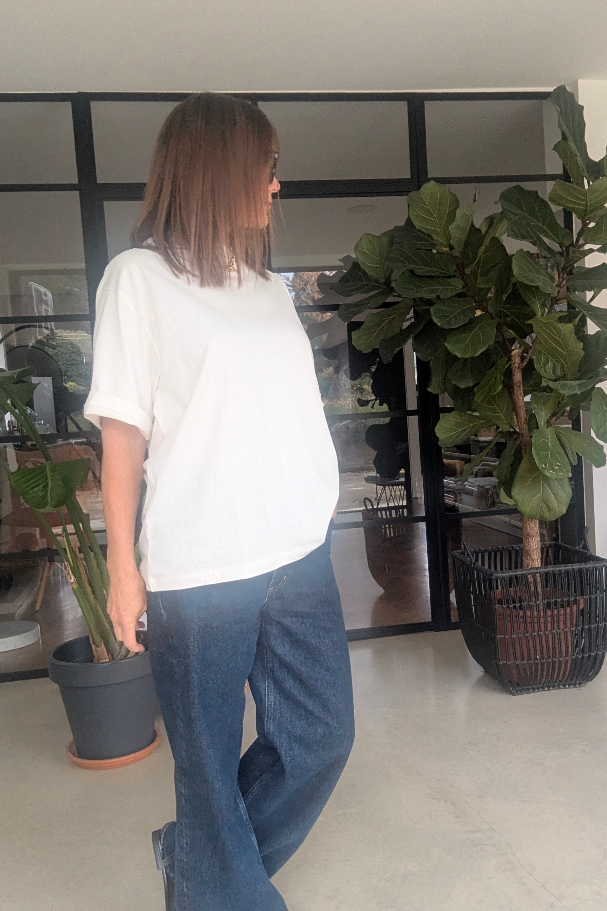 Made from organic cotton, perfectly oversized but not too oversized, round neck and dropped shoulders, its a useful piece to layer under jumpers too.