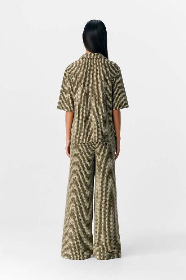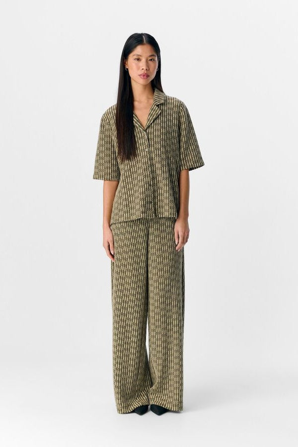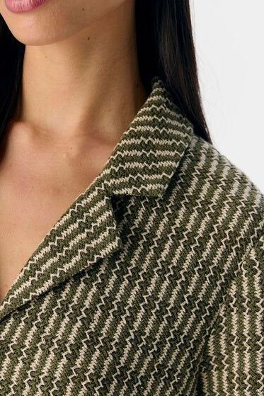 This ribbed knitted shirt in the most flattering olive green shade is part of a matching set. It looks great worn as a stand alone peice or as a striking co-ord with the matching Objisja knitted trousers.