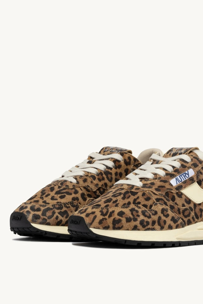 Reelwind by Autry feature a sleek silhouette and an ’80s-inspired retro design, offering lightness, flexibility, and optimal grip. Crafted from leopard-print suede with ivory leather side inserts for a refined, original effect.