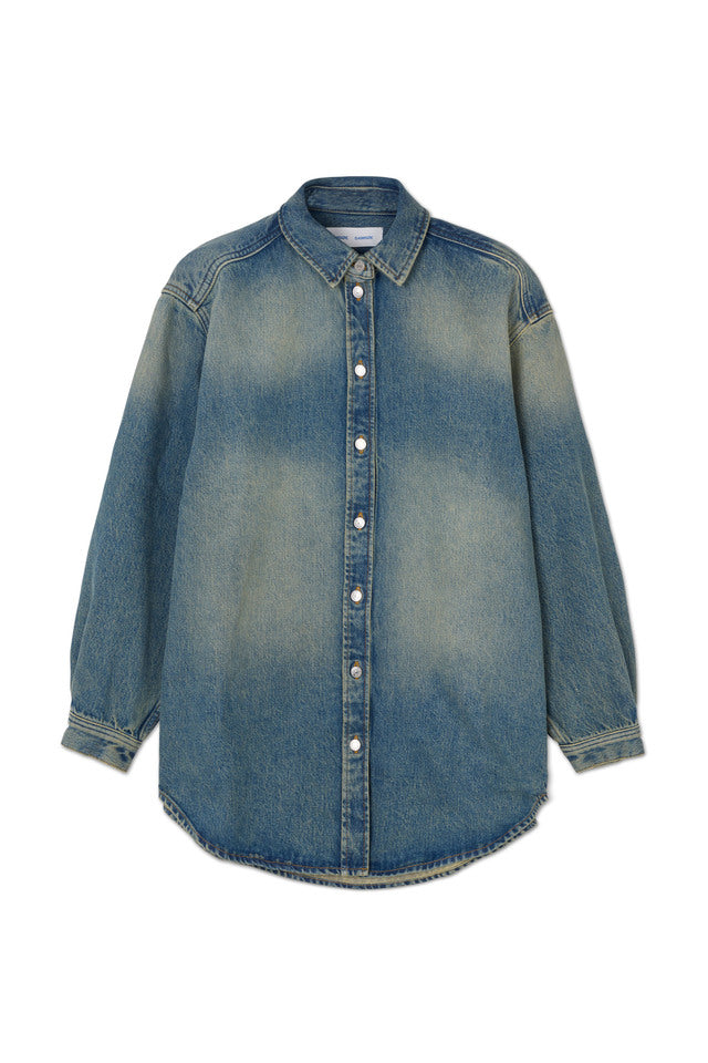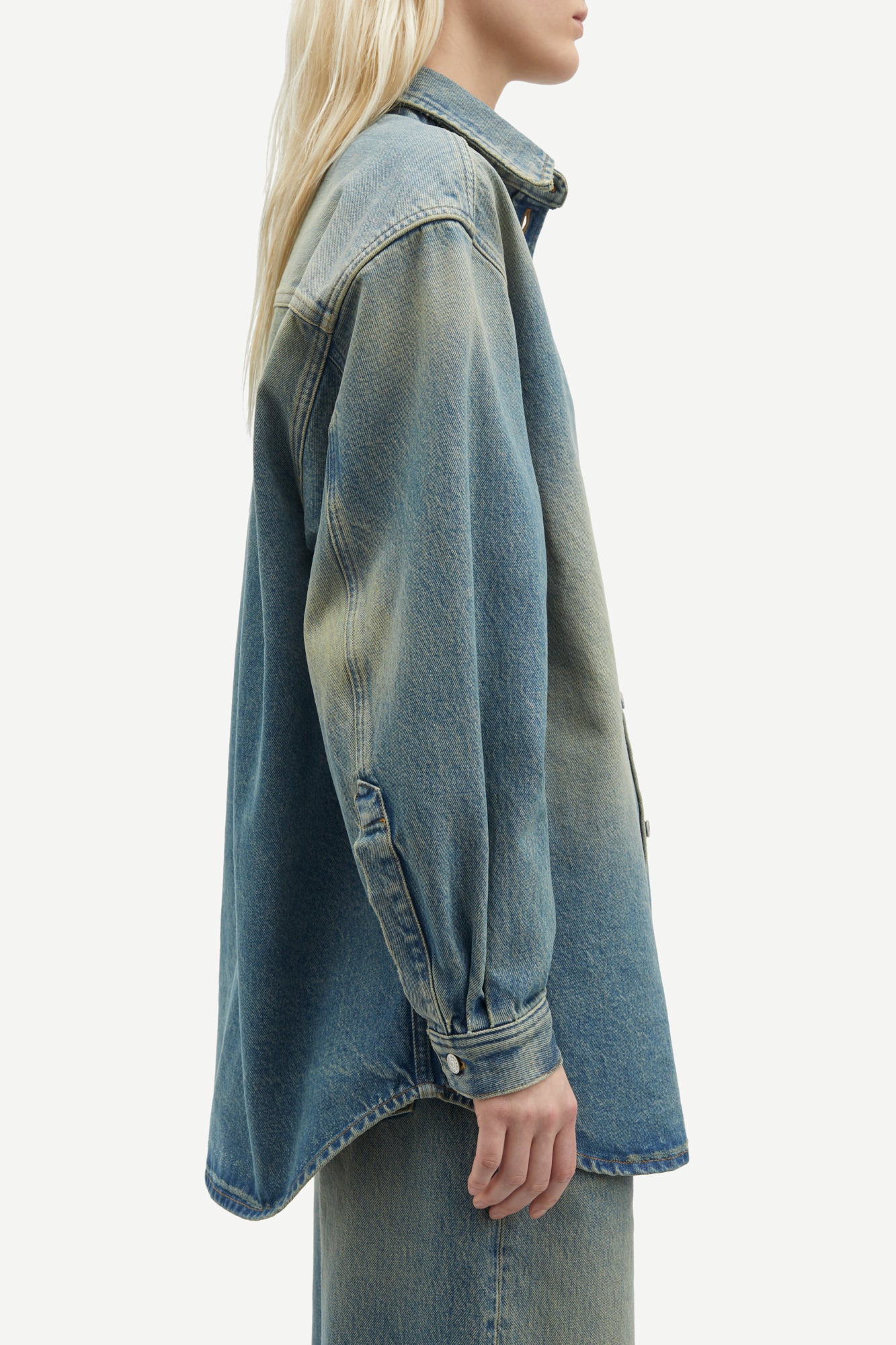 Our kind of denim overshirt - Samsoe's Salea in a vintage washed blue features an oversized silhouette, dropped shoulders, button fastening with classic yoke seam detailing.