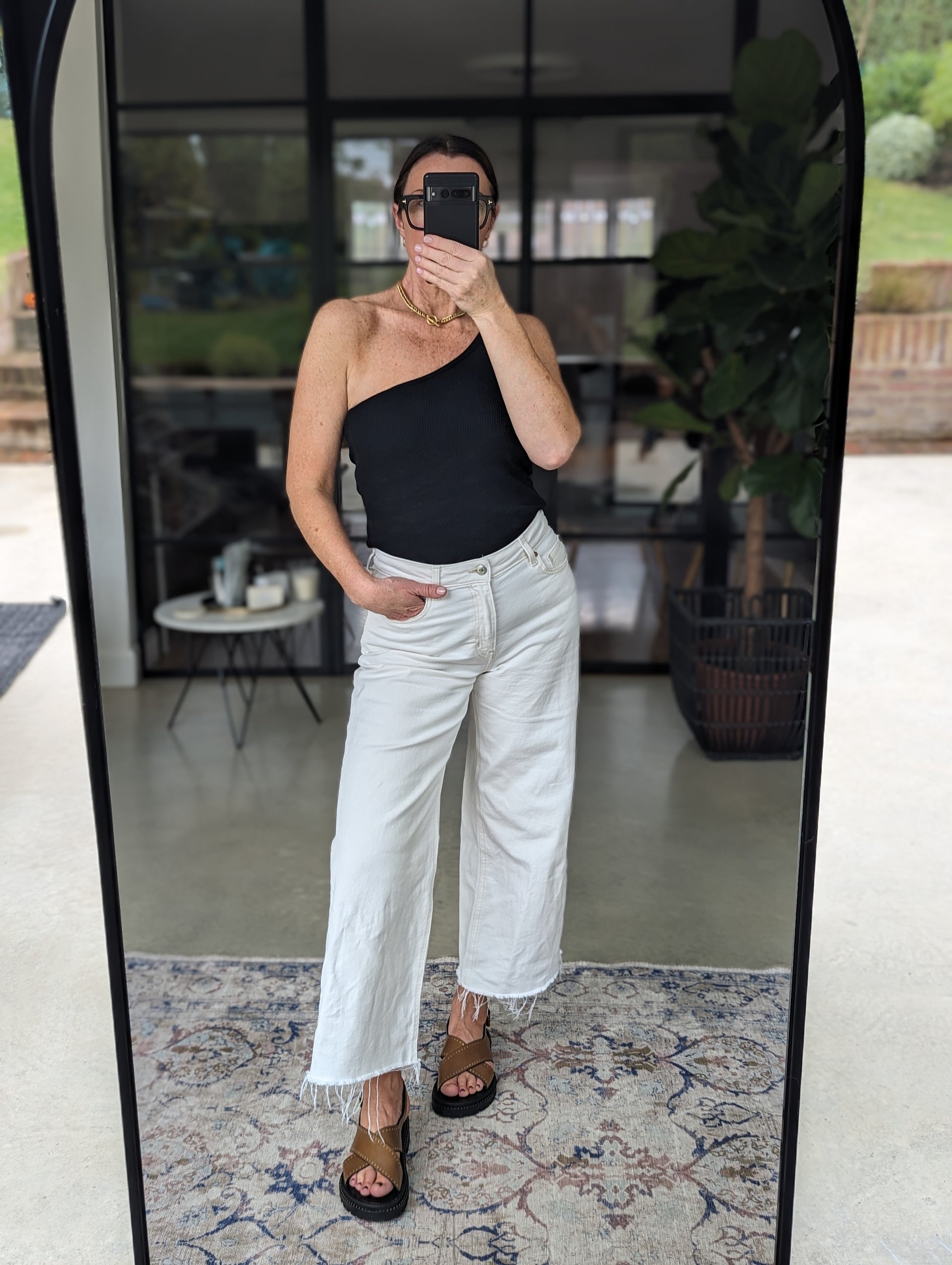 An elevated Isabel Marant basic that's perfect for pairing with denim and leather sandals. Crafted in a ribbed soft jersey, cut to an elegant one-shoulder design with a gentle scoop back featuring an embroidered logo on the reverse.
