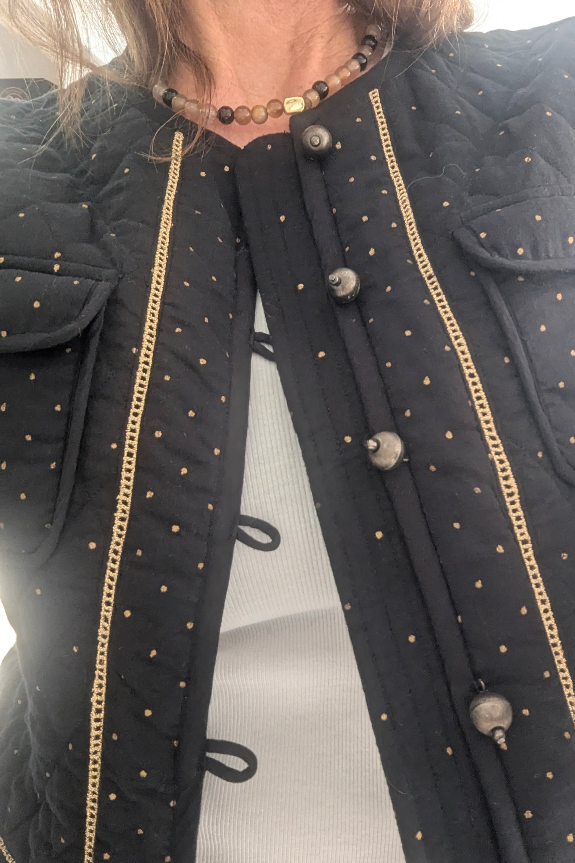 Vania, a signature Marant Etoile style, lightly quilted, an iconic Marant piece. Crafted from organic cotton and featuring tiny golden polka dots. Wear with denim and a vest for a simple outfit that packs a punch.
